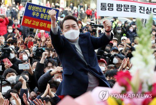 (서울·울산·김해·거제·진주·창원=연합뉴스) 이슬기 이동환 기자 = 국민의힘 윤석열 대선 후보는 공식선거전 첫 주말인 19일 부산·울산·경남(PK) 일대를 훑으며 표밭갈이에 집중했다.