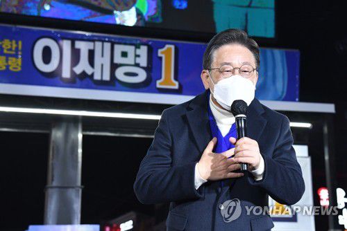 홍대 집중유세에서 지지 호소하는 이재명 후보 |