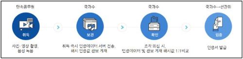 단속 공무원이 DAS 앱을 활용해 사진이나 영상을 촬영하고 음성을 녹음하면 해시값이 추출돼 국과수의 서버로 전송되고, 국과수는 증거물이 원본임을 알리는 인증서를 선거관리위원회에 발급한다.
