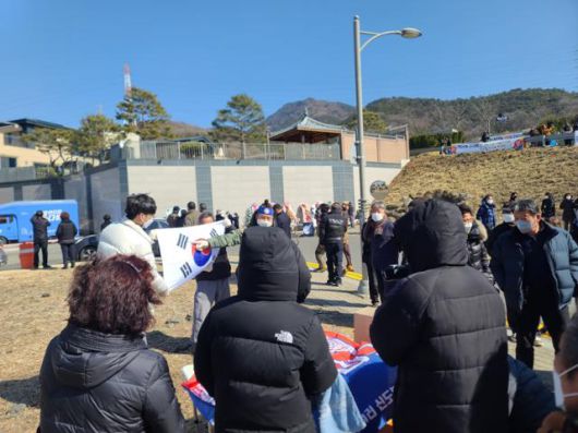 20일 오전 대구 달성군 유가읍 쌍계리 박근혜 전 대통령 사저앞에는 쌀쌀한 날씨에도 불구하고 100여명의 구경꾼들이 장사진을 치고 있다. 김민규 기자 whitekmg@hankookilbo.om |