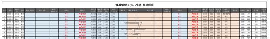 범죄일람표 1번은 앞에서 설명한 가장매매와 통정매매를 정리한 것이다. 주가조작세력이 관리하는 계좌끼리 물량을 주고받은 범죄이므로 매수 계좌와 매도 계좌가 모두 표시되어 있다. 김건희 씨는 매수 매도 양쪽을 합쳐 522행에서 모두 106회 등장한다.