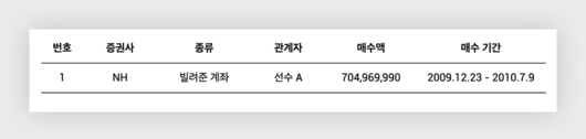 최은순 씨는 계좌 한 개를 1단계의 ‘주포’ 이 모 씨에게 빌려줬다. 어머니와 딸이 나란히, 같은 주가조작 선수에게 계좌를 빌려준 것이다. 거래 기간은 1단계 작전 시기에 해당하는 2009년 12월 23일부터 2010년 7월 9일까지, 매수 액수는 7억 5백만 원 정도다.