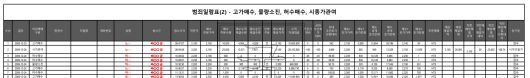범죄일람표 3번. 작전에 동원된 게좌에 관한 정보가 나와있다.