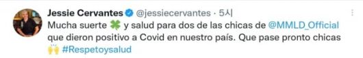 지난 20일, 제시 세르반테스는 개인 SNS 계정을 통해 "멕시코에서 코로나19 양성을 보인 모모랜드의 두 소녀에게 행운과 건강을 기원한다"며 응원의 메시지를 남겨 눈길을 끌었다.
