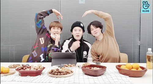 지민은 지난 20일 방탄소년단 RM, 슈가와 함께 정월대보름 맞이 '뒷 부럼깨기'라는 제목으로 브이라이브(VLIVE)를 진행했다.