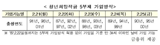 금융위원회는 “청년희망적금은 정부 예산에서 저축장려금을 지원하는 상품으로, 예산 규모 등을 고려해 가입 접수가 종료될 수 있다”고 말했다.