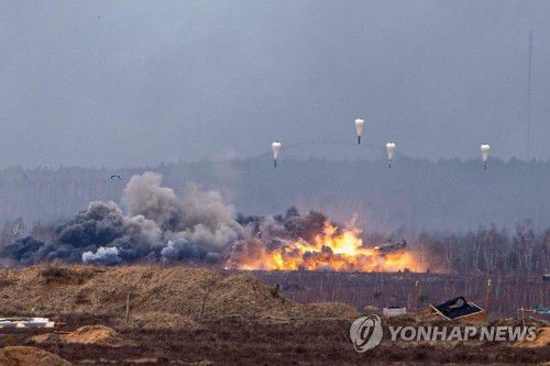 훈련 지속하는 러시아와 벨라루스 탱크들 |