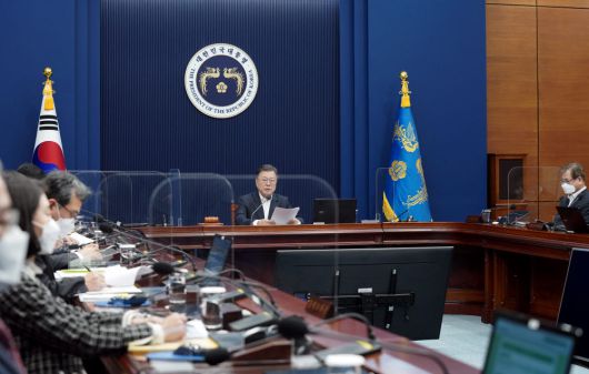 문재인 대통령이 22일 청와대 국가위기관리센터에서 열린 국가안전보장회의 및 대외경제안보전략회의 연석회의에서 발언하고 있다. <청와대 제공> [Copyright © 전자신문. 무단전재-재배포금지]