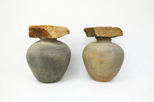 두 토기는 높이가 49㎝ 안팎으로 거의 비슷하고, 형태도 유사해 의도적으로 같이 만든 물품으로 추정된다. 뚜껑 돌은 토기 안에 담긴 내용물이 빠져나가지 않도록 일부러 얹은 것으로 보인다.