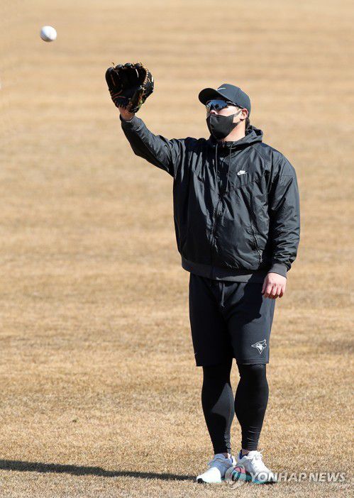 일주일 동안 격리 생활을 한 류현진은 가벼운 훈련으로 몸을 풀었다.