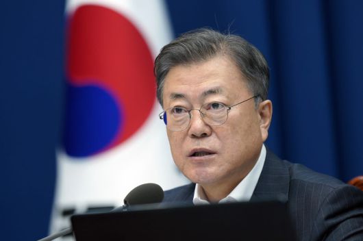 문재인 대통령이 22일 청와대 여민관에서 영상 국무회의를 주재하고 있다. 연합뉴스 |