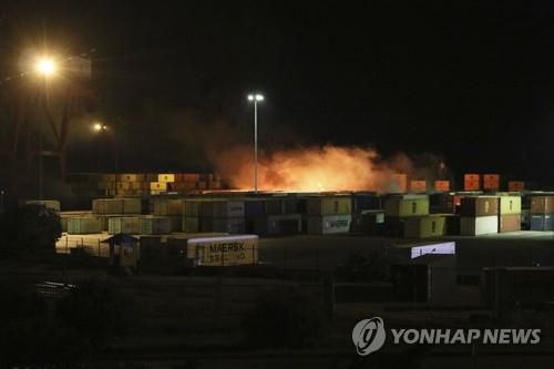 이스라엘군 공습으로 불길 치솟는 시리아 북부 라타키아 항 |