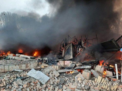 폭격으로 파괴된 우크라 키예프의 국경수비대 시설 |