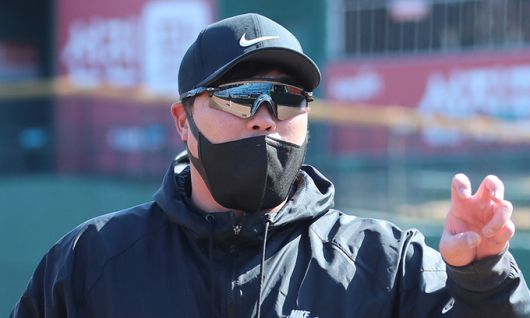 MLB 직장폐쇄로 미국에서 훈련하지 못하는 토론토 류현진이 지난 23일 친정팀 한화의 스프링캠프가 열리고 있는 대전구장에서 개인훈련을 하고 있다. 대전=뉴스1 |