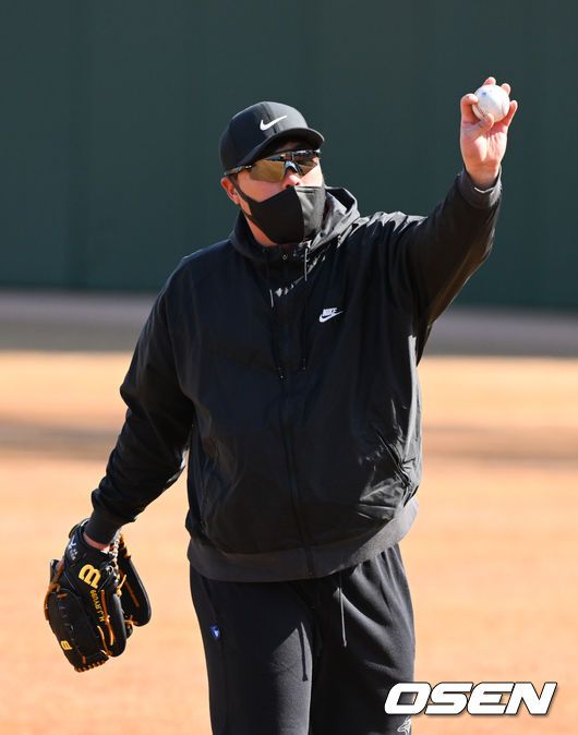 토론토 류현진이 대전구장 외야에서 캐치볼을 하고 있다 2022.02.23 /OSEN DB |