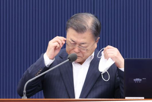 문재인 대통령이 22일 청와대 여민관에서 영상 국무회의를 주재하고 있다.(사진=연합뉴스) |