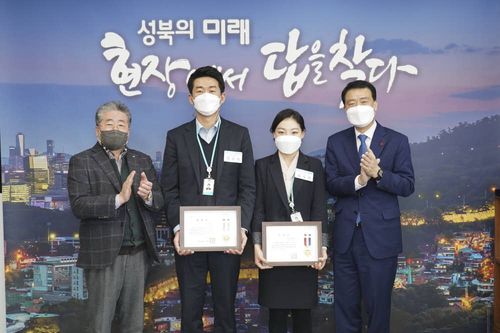 성북구는 지난 25일 보이스피싱 2차 피해를 막은 장우석 부장과 유수진 주임에게 표창을 수여했다. 종암경찰서도 24일 두 직원에게 감사장을 전달했다.