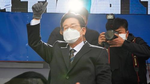 김포에서 지지자에게 인사하는 이재명 대선후보 |
