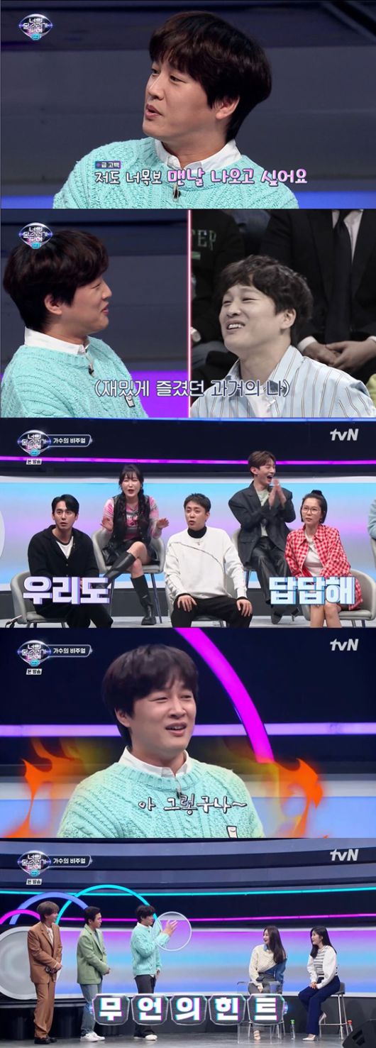 "음치가 누군거 같냐"는 강민경에 질문에 차태현은 다섯 손가락을 쫙 펴 5번 싱어를 지목했다. 이에 은지원은 "진짜 같이 푸는거냐"며 웃음을 터뜨렸고, 이해리는 "우린 한 팀"이라고 말해 웃음을 자아냈다.