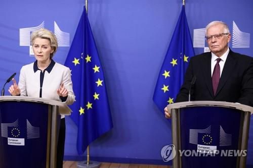 러시아에 대한 추가제재안 발표하는 유럽연합 수뇌부 |