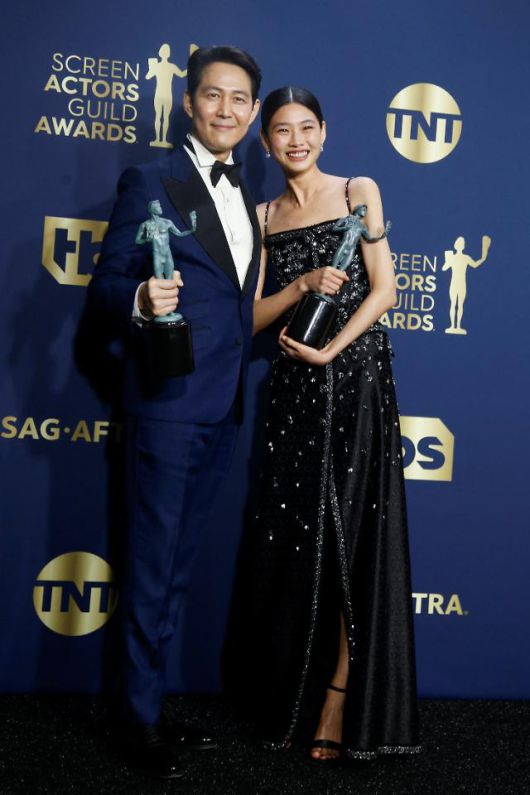 '오징어게임'은 최고상인 앙상블상을 HBO '석세션'에 내어주었지만, 스턴트 앙상블상, 남우주연상, 여우주연상까지 휩쓸며 3관왕을 거머쥐었다. 특히 SAG에서 한국어 드라마의 첫 수상이라는 의미 있는 발자취를 남겨 눈길을 끈다.