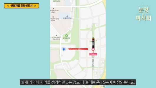 단지 소개를 보면 GTX 프리미엄을 누릴수 있다고 설명하는데요. 역세권이라는 말은 없잖아요? 아무래도 GTX-A 운정역과 1.5km 가량 떨어져 있어서 도보 이용은 조금 힘들수도 있기 때문입니다. 직접 걸어보니 약 15분정도 걸렸습니다.