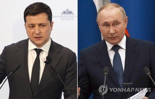 볼로디미르 젤렌스키 우크라이나 대통령(왼쪽)과 블라디미르 푸틴 러시아 대통령 |