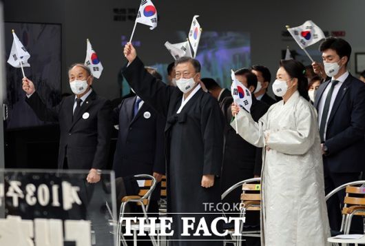 [더팩트ㅣ허주열 기자] 문재인 대통령 내외가 1일 오전 10시 서울 서대문구 국립대한민국임시정부기념관(이하 임정기념관)에서 거행된 제103주년 3·1절 기념식에 참석했다. 독립유공자 및 독립운동 사적지 발굴·보존 강화와 3·1운동 및 임시정부 수립 100주년을 맞이해 서울시 서대문구 독립문공원 인근에 건립된 임정기념관은 올해 3·1절에 맞춰 개관했다.