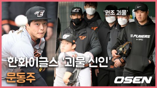 문동주는 그간 한화 퓨처스가 있는 서산 캠프에서 시즌을 준비했고 1일 오전 대전 한화생명이글스파크로 넘어왔다. 수베로 감독을 비롯한 코치진, 한화의 원조 괴물 토론토 류현진이 보는 앞에서 30구씩 두 번 총 60구를 던졌다. `원조 괴물` 류현진은 매의 눈으로 문동주의 투구자세, 보폭 등 머리부터 발끝까지 모든 부분을 유심히 살펴보았다.