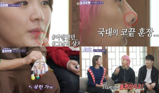 이 가운데 곽윤기 역시 “스케이트 날에 차여서 코가 함몰하고 콧구멍이 잘렸었다”며 “어릴 때 마음대로 탈 때 보조개도 앞 사람한테 차였다, 볼이 뚫렸었다”고 했고, 박승희도 “나도 10살에 입술이 뚫렸다 안과 밖을 많이 꿰맸다”고 말해 모두 경악하게 했다.