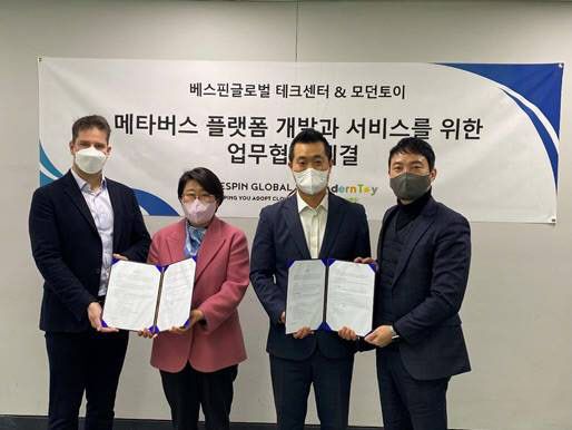 [이데일리 김국배 기자] 클라우드 관리 기업 베스핀글로벌 자회사인 베스핀글로벌 테크센터(BTC)는 완구 업체 모던토이와 메타버스 플랫폼 개발·서비스를 위한 업무협약을 체결했다고 2일 밝혔다.