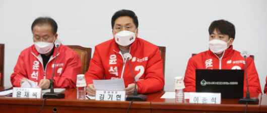 김기현 국민의힘 원내대표가 1일 오전 국회에서 열린 확대선거대책본부회의에서 발언하고 있다. (사진=연합뉴스) |