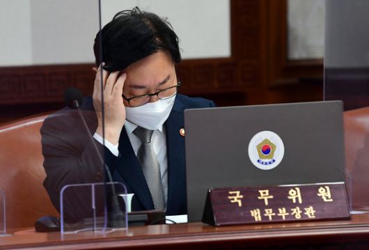 (서울=뉴스1) 송원영 기자 = 박범계 법무부 장관이 2일 오전 서울 종로구 정부서울청사에서 열린 국무회의에 참석해 회의 자료를 살펴보고 있다.2022.3.2/뉴스1 |