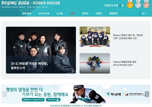 (서울=연합뉴스) 장보인 기자 = 대한장애인체육회(회장 정진완)은 2022 베이징 동계패럴림픽에 참가하는 한국 선수들의 정보 제공 및 경기 중계를 위한 온라인 코리아하우스(koreahouse.koreanpc.kr)를 개관했다고 2일 밝혔다.