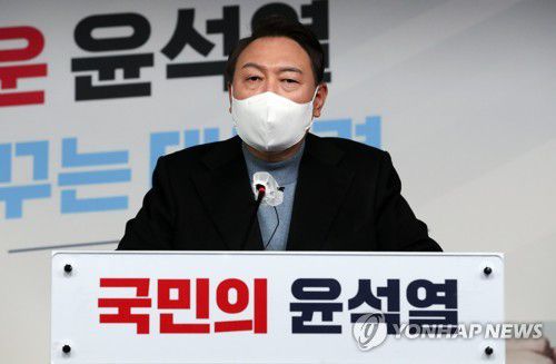 취재진 질문에 답하는 윤석열 후보 |