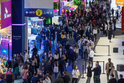 2일(현지시각) MWC 2022가 열린 스페인 바르셀로나 피라그란비아 전시장이 참관객들로 붐비고 있다. /뉴스1 |