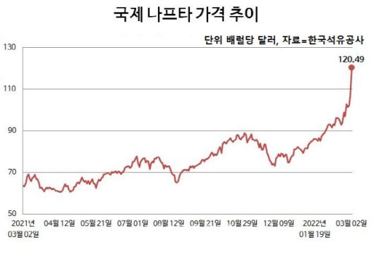 나프타 가격이 치솟은 이유는 러시아의 우크라이나 침공으로 촉발한 에너지 수급 불안에 국제유가가 급등했기 때문이다. 나프타는 원유를 정제해 생산하다 보니 유가 상승은 나프타 가격 상승과 직결되는 구조다. 대한석유협회 관계자는 “나프타 가격이 t당 1000달러를 돌파한 것은 역대 3번째”라며 “국제유가 배럴당 140달러를 넘어서며 역사상 최고치를 찍었던 지난 2008년에 처음 나타났고, 이후 고유가가 정점에 달했던 2012년 3월 이후”라고 말했다.