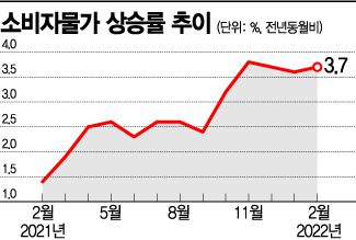 어운선 통계청 경제동향통계심의관은 "국제유가나 곡물가 상승, 글로벌 공급 차질 등 대외적 물가 상승 요인에 우크라이나 사태 등 지정학적 요인이 가세하면서 (소비자물가는) 더욱 악화할 우려가 있다"며 "다음 달에도 물가 오름세가 지속할 것 같다"고 전망했다. 심리적 물가 저항선인 4%대에는 미치지 않았으나 연중 인플레이션 상승 압력은 더 강해질 것이라는 게 정부의 진단이다.