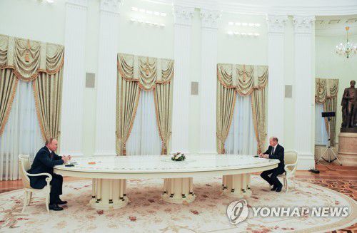 올라프 숄츠 독일 총리(오른쪽)와 블라디미르 푸틴 러시아 대통령 |