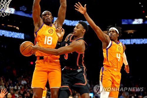 (서울=연합뉴스) 김동찬 기자 = 피닉스 선스가 경기 종료 직전에 터진 캐머런 존슨의 역전 결승 3점포로 뉴욕 닉스에 1점 차 짜릿한 승리를 거뒀다.