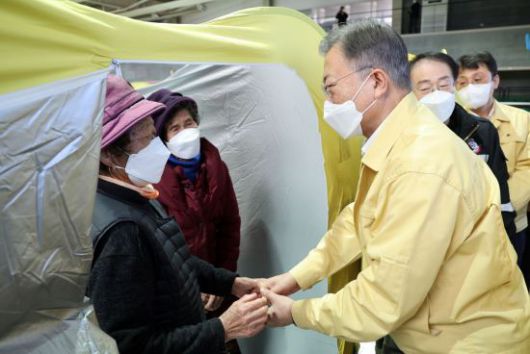 문 대통령은 이날 오전 경북 울진국민체육센터에 마련된 이재민 대피소를 방문했다. 이번 방문에는 전해철 행정안전부 장관, 이진석 청와대 국정상황실장 등이 동행했다.