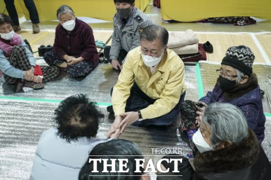 문 대통령은 이날 오전 울진국민체육센터에 마련된 이재민 대피소를 찾아 주민들을 위로했다. 현재 울진국민체육센터 등 16개소의 대피소에는 600여 명의 이재민이 대피해 있다.