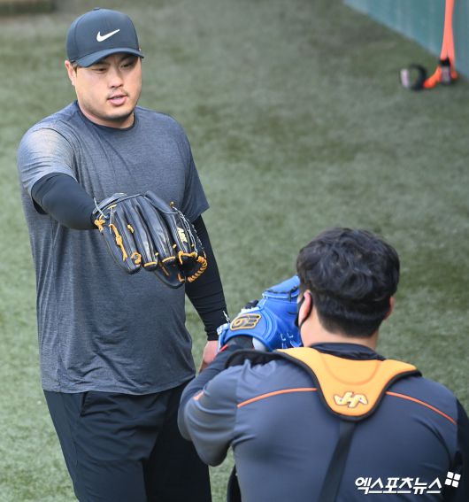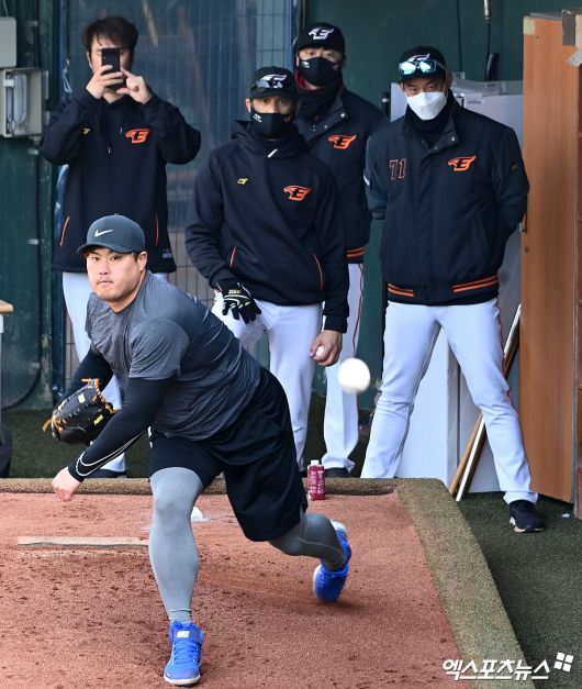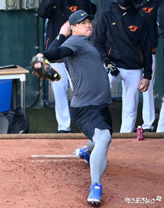 메이저리그 직장폐쇄로 친정팀 한화 캠프에서 훈련중인 토론토 류현진이 지난 5일 오전 대전 한화생명 이글스파크에서 불펜 피칭을 가졌다.