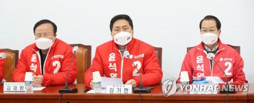 (서울=연합뉴스) 김동현 이동환 기자 = 국민의힘 김기현 원내대표는 7일 확진자 사전투표 혼란과 관련해 "선거 주무부처인 법무부 장관과 행안부 장관에 민주당 현역의원을 버젓이 임명해 둔 채 사실상 불공정 선거관리를 조장한 바로 그 몸체가 문재인 대통령"이라고 말했다.
