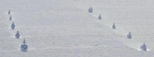 지난해 10월 태평양 서부에서 최초로 공동 순찰을 벌이는 러시아와 중국 함정 |