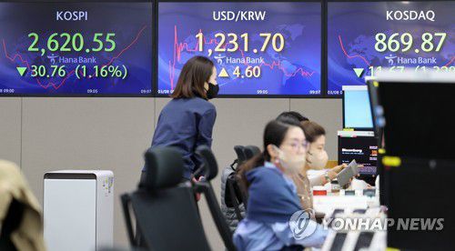 이날 코스피도 1.09% 내린 2,622.40에 거래를 마치며 3거래일 연속 하락했다.