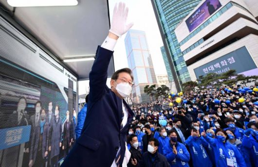 이 후보는 이날 경기 광명 철산 로데오거리 유세에서 "아무것도 가진 것 없는 비주류 아웃사이더 정치인 이재명을 이자리까지 불러주신 것도 바로 국민"이라며 "국민께서 기대하는 만큼 제가 여러분께 약속한 것들을 단 하나도 빼지않고 철저히 지켜서 정치를 바꾸니, 대통령 하나 바꾸니 내 삶이 이렇게 바뀌는구나 생각할 수 있도록 하겠다"고 말했다.