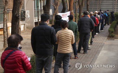 투표 시작 기다리는 유권자들 |