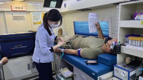(동두천=연합뉴스) 노승혁 기자 = 주한 미군 용산·케이시 시설사령부와 대한적십자사는 지난 8일 경기 동두천 캠프 케이시 기지에서 '주한미군 사랑 나눔 헌혈' 행사를 했다고 9일 밝혔다.