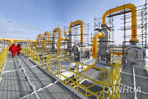 러시아산 가스를 중국으로 들여오는 중국 헤이룽장성 헤이허(黑河)의 가스관 [신화=연합뉴스 자료사진] |